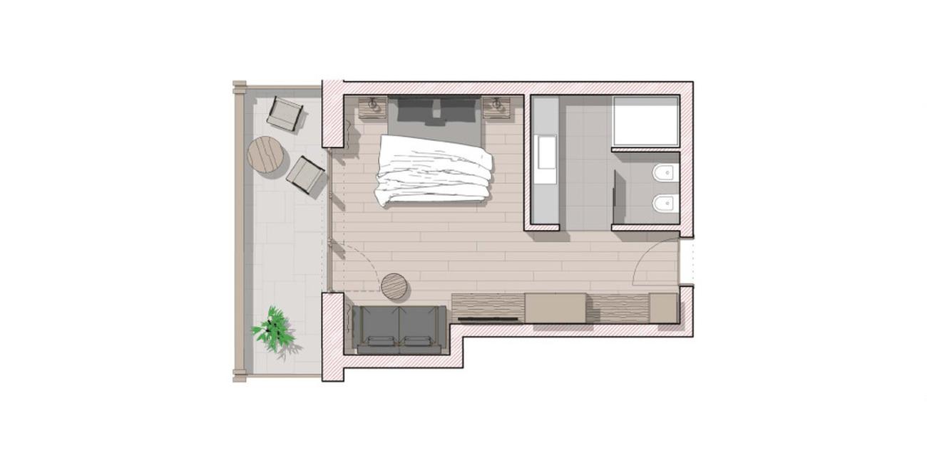 Pavimento in legno. Letto matrimoniale di 2,10 m. Divano. Schermo piatto da 42 pollici. Free WiFi. Cassaforte. Minibar. Macchinetta per il caffè Cremesso. Balcone con vista sui prati. Bagno con doccia spaziosa. Asciugacapelli e specchio da trucco. WC e bidet separati. Borsa wellness con accappatoi, teli da bagno e ciabattine.